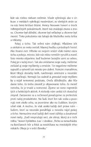 a ticho. Nemusíme mať každý deň nové zážitky a dosahovať